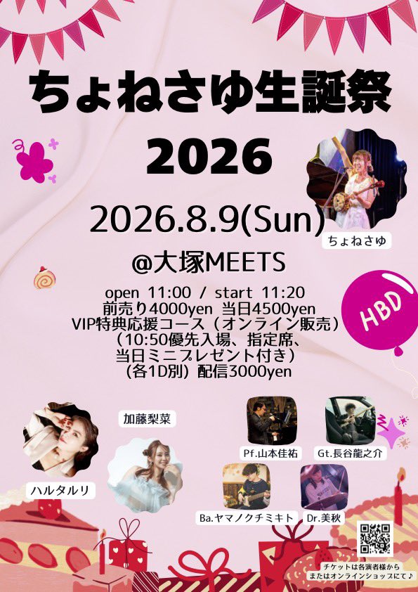 毎年恒例のちょねさゆさんの生誕祭に出演します。