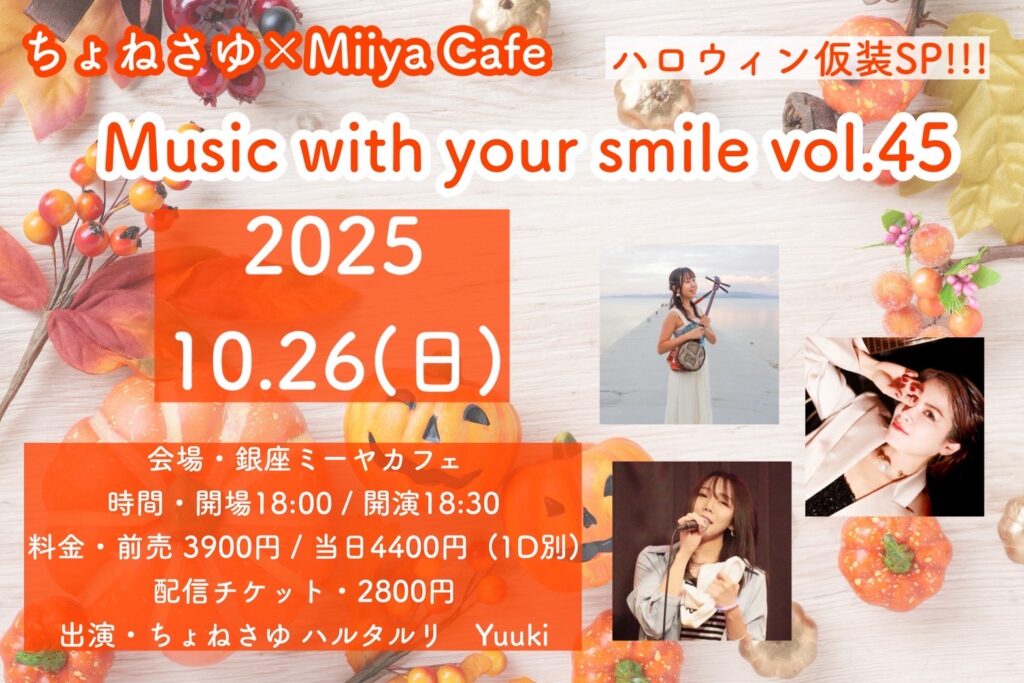 news bio disco live photo goods salon contact LIVE 【銀座】Music with your smile vol.45 ハロウィン仮装SP!!! ハロウィンといえば!仮装です! 特攻服の印象が強いけど、きっと何か楽しませてくれる予感! ちょねさゆさん、Yuukiさんも楽しみ~ ・日時:2025年10月26日(日) OPEN 18:00 START 18:30 ・会場:銀座ミーヤカフェ(東京都中央区銀座6丁目3-16) 会場サイト ・出演:ちょねさゆ/Yuuki/ハルタルリ ・料金:前売 3900円 / 当日 4400円(1D別) ・配信チケット: 2800円 ・予約はライブフォームにて。 ← Back
